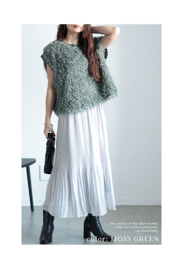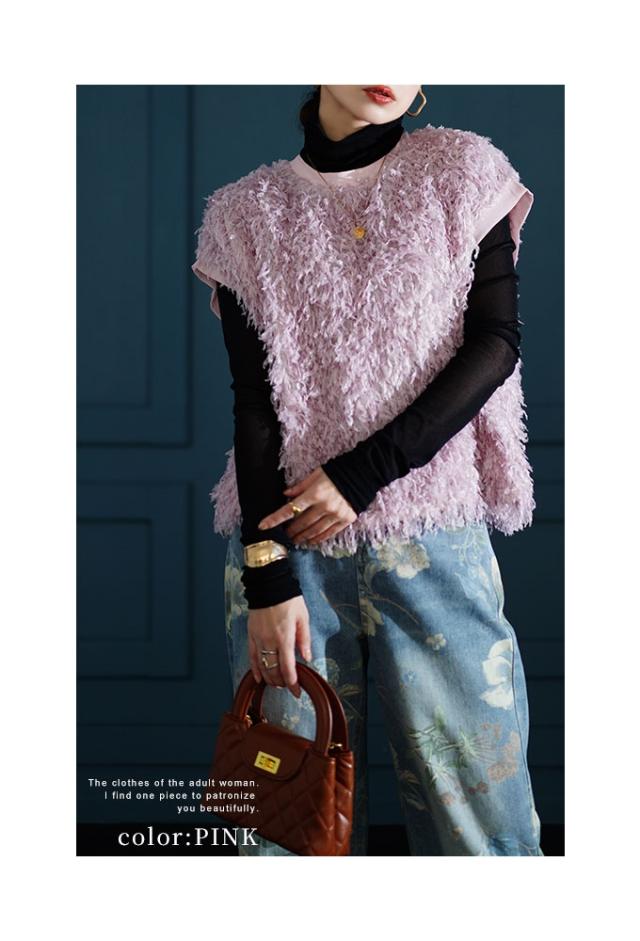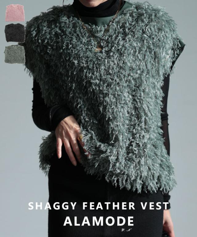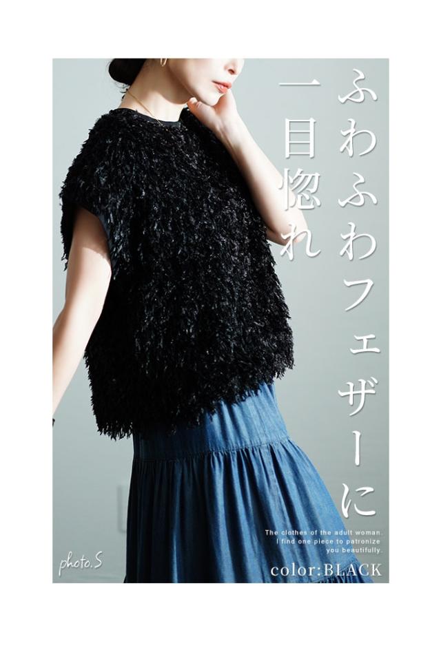春新作 思わず触れたくなるシャギーフェザーベスト レディース ファッション トップス ベスト シャギー フェザー ふわふわ 重ね着 レイヤード ピンク 黒 緑 30代 40代 50代 60代 サワアラモード sawaalamode otona 大人 cawaii 可愛い 洋服 かわいい服 swmam-650