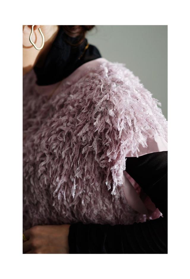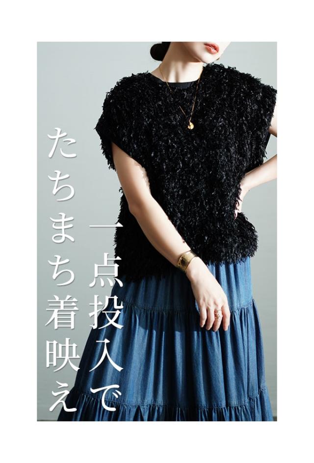 特徴: シャギーフェザー リブ フレンチスリーブ