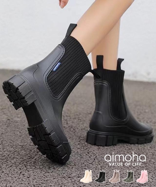 レインブーツ レディース 厚底 ショート リブ おしゃれ サイドゴア おしゃれ ショートレインブーツ 大人 通勤 靴 軽量 防水 撥水 長靴 20代 30代 40代 50代 【厚底ソールで長時間でも疲れにくい】