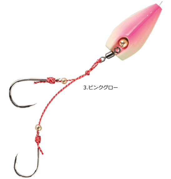 ヘッドとフックを遊動にする事によりフックUP後の鯛特有の首振りによるバラシを激減。またフォール中にバイトしてきた鯛に違和感を与えず喰い込せる事が可能になりました。