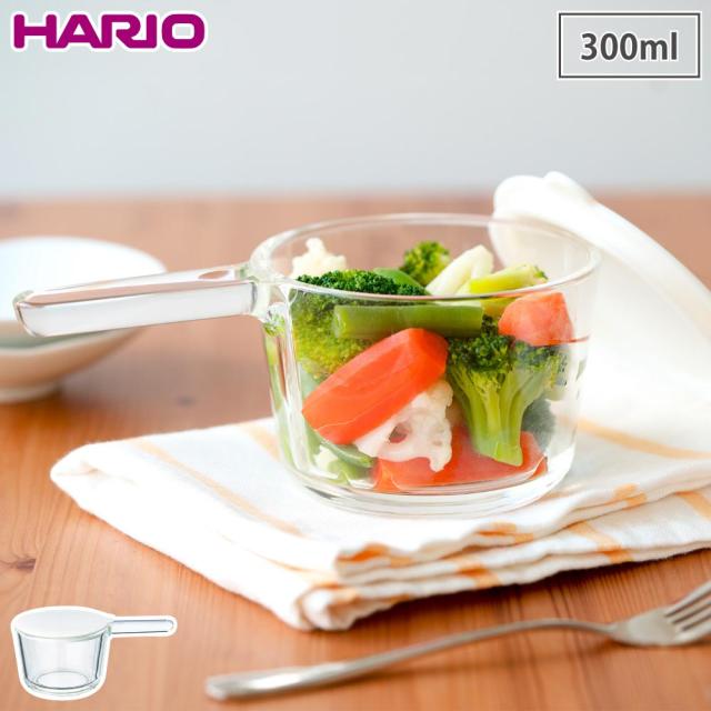 ハリオ ガラスのある生活 ガラスの小鍋 HARIO GKN-300-W【 鍋 片手鍋 なべ 保存容器 蓋付き 耐熱ガラス 電子レンジ オーブン 食洗機対応 】