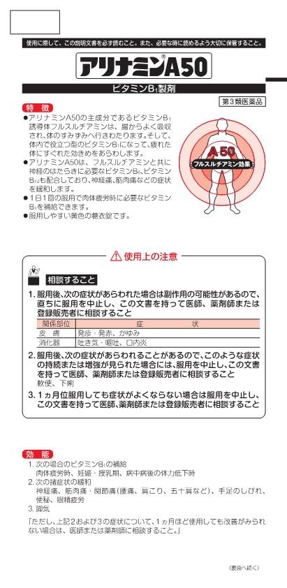 【第3類医薬品】 アリナミンA50 65錠 - アリナミン製薬 [ビタミンB1/筋肉痛]
