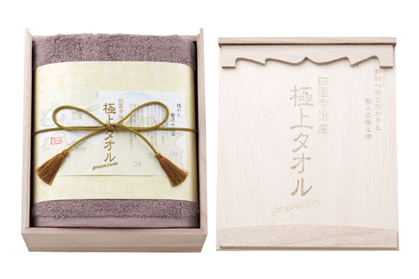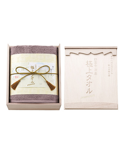 「今治謹製 極上タオル バスタオル GK5053 パープル」は、吸水性、速乾性、耐久性の全てにこだわったプレミアムバスタオルです。ソフトな風合い、艶やかな光沢、しなやかなドレープ性。桐箱入りで各種内祝いやお返しのギフトに最適です。カラー:パープル