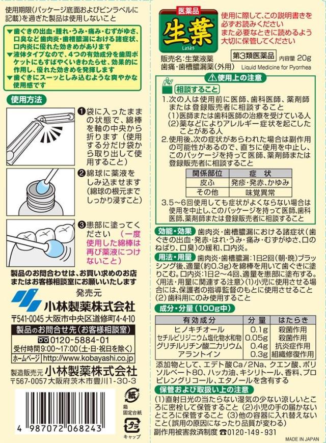 【第3類医薬品】 生葉液薬 20g - 小林製薬 [歯肉炎/歯槽膿漏]
