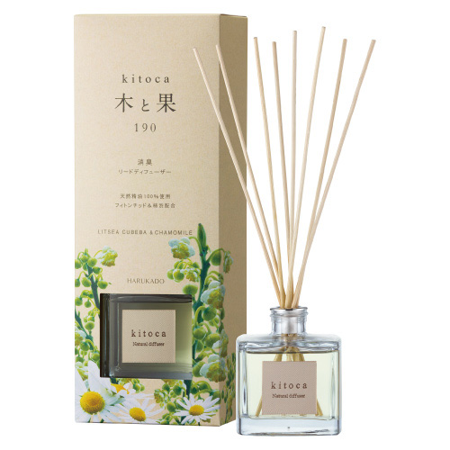 「木と果 190 リツェアクベバ&カモミール」は、天然精油100%のナチュラルな香りを楽しめる大容量のリードディフューザーです。心を穏やかにし、和らげたい時に。