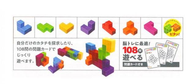 「パズル チャチャキューブ 7カラー」は、6面がマグネットでつながるブロックキューブです。組み立てるパターンは、ひとつではありません。54枚のカード付き。難易度レベル1〜3の合計108の問題に挑戦です。いくつできるか挑戦してみよう。