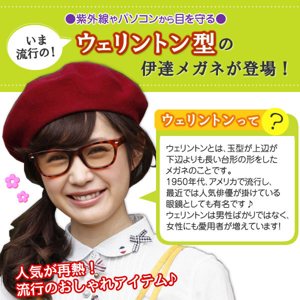 「メラニン伊達メガネウェリントン ブラック」は、まぶしさの原因となるブルーライトをカットしてくれる伊達メガネです。流行のウェリントンタイプでおしゃれに目を守ります。テンプル内側の花柄がアクセントに。紫外線は99%以上カット。蛍光灯やパソコンなどのディスプレイのまぶしさからも守ってくれます。カラー:ブラック