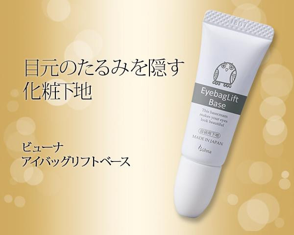 「ビューナ アイバッグリフトベース 10g」は、目元用化粧下地です。目元にハリを与えるヘスペリジン、セラミドを配合。上品なピンクパールベージュで目元を自然に明るく見せます。仕上げ用のハイライトカラーとしても、ファンデーションの上からご使用いただけます。