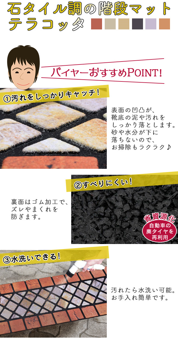 石タイル調の階段マット テラコッタ - コモライフ