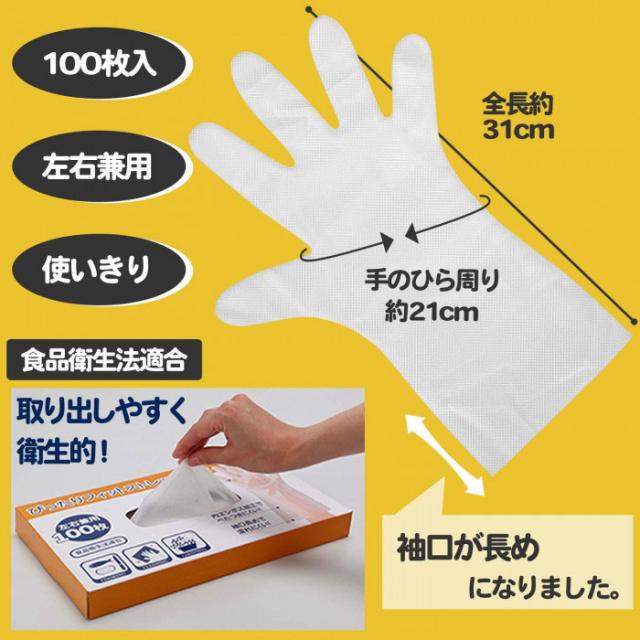 「ぴったりフィットストレッチ手袋 100枚入」は、伸びて指にフィットしてズレにくく、袖口長めで濡れにくいから使いやすい手袋です。使いきりタイプだから衛生的で、左右兼用で片手作業にも使えます。柔かく伸びて指にフィットし調理・掃除・園芸など、様々な作業で使えて便利。災害時にも衛生的で防災用リュックのストックとしてもおすすめです。