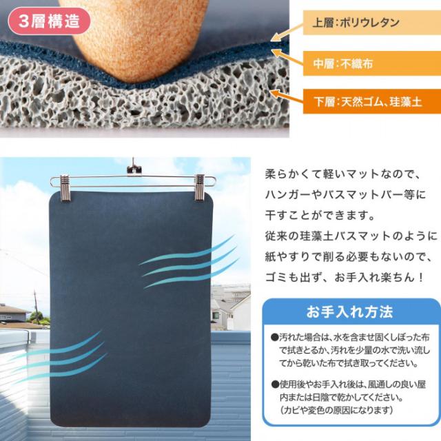 珪藻土を練り込んだやわらかいバスマット - コモライフ