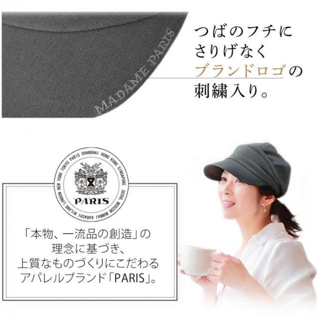「お顔を守るキャスケット」は、視界を遮らない程よい長さで、お顔をぐるりと覆う幅広のつばのキャスケットです。型崩れしにくいつば芯入りで安っぽく見えません。ふんわりシルエットとおでこのタックで、頭の形がきれいに見え小顔効果も。すっぴん隠しにも便利!UVカット率99%。オールシーズン使える素材です。「本物、一流品の創造」の理念に基づき、上質なものづくりにこだわるアパレルブランド「PARIS」の帽子です。