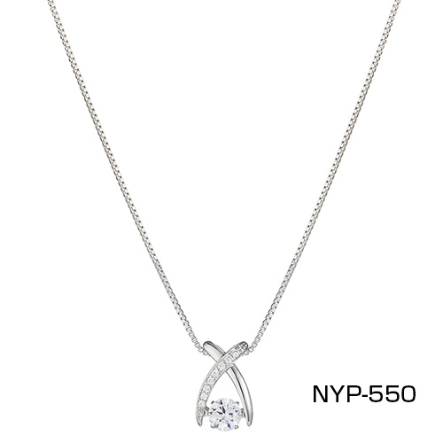「クロスフォーニューヨーク ダンシングストーン NYP-550」は、身に着けている方の願いが叶いますようにと、思いが込められたメッセージジュエリーです。ダンシングストーンは、石だけが踊るように振動するのが特徴。左右の丸カンで結ばれて、前後に細かく揺れて輝きます。美しく見えるよう女性の胸の角度に合わせて設計されています。十字が浮かぶクロスフォーカット。