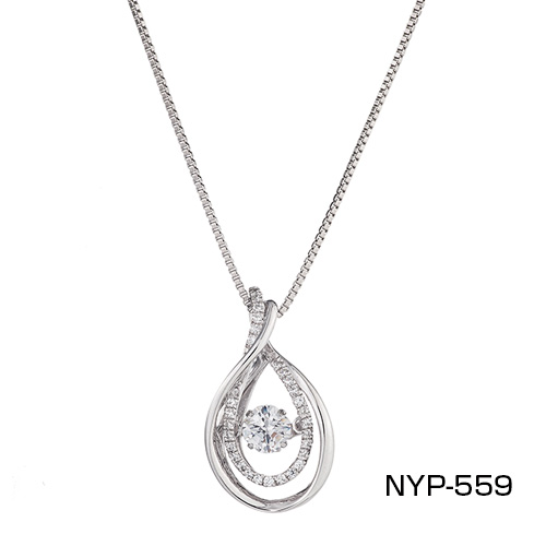 「クロスフォーニューヨーク ダンシングストーン NYP-559」は、身に着けている方の願いが叶いますようにと、思いが込められたメッセージジュエリーです。ダンシングストーンは、石だけが踊るように振動するのが特徴。左右の丸カンで結ばれて、前後に細かく揺れて輝きます。美しく見えるよう女性の胸の角度に合わせて設計されています。十字が浮かぶクロスフォーカット。
