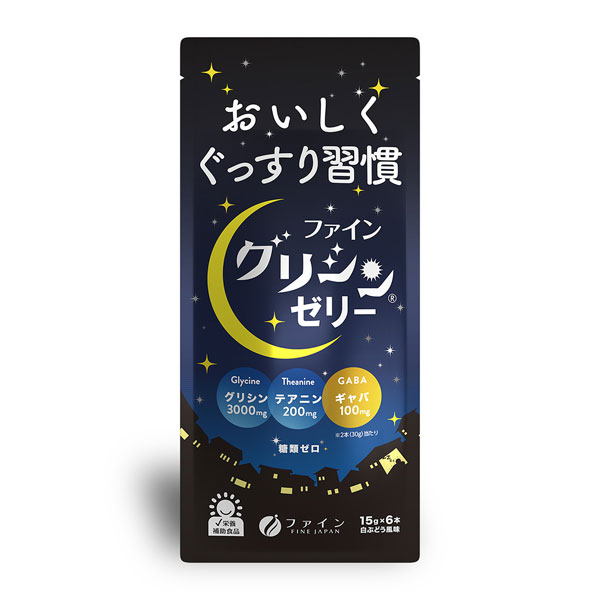「ファイン グリシンゼリー 6本」は、デザート感覚でるつんと食べられるスティックゼリーです。お休み前でも安心なノンカフェイン&糖類ゼロ。すっきり食べやすい白ぶどう風味。