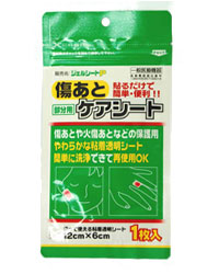 (1)本品をそのままか、適用部位(傷あと)よりやや大きめに切り、皮膚に粘着面をあてて下さい。 (2)長時間使用する場合は、1日1回以上、水又はぬるま湯で洗ってください。汚れがひどい場合は中性洗剤で洗い、水又はぬるま湯でよくすすいで下さい。 (3)洗浄後はシートを軽く振って水気を切り、清潔な所で粘着面を上にして自然乾燥させて下さい。 (4)ひじ、ひざ等の関節や、かかと等のよく動くところに貼る場合は、伸縮包帯等で軽く押さえると固定し易くなります。
