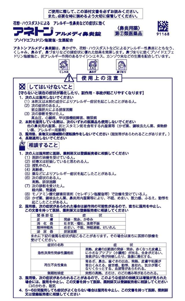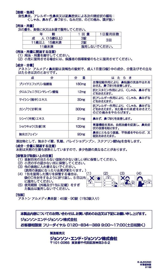 【指定第2類医薬品】 アネトン アルメディ鼻炎錠 90錠 - ジョンソン&ジョンソン [セルフメディケーション税制対象] [鼻炎用点鼻薬/急性鼻炎]
