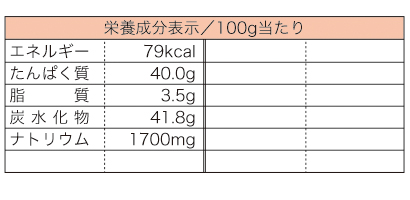 乾のり(有明海産)、砂糖、本醸造醤油、糖蜜、塩、デキストリン、本みりん、酵母エキス、発酵調味料、いりこ、魚介エキス、えび(国内産)、とうがらし(中国産)、かつお、こんぶ、しいたけ、あご