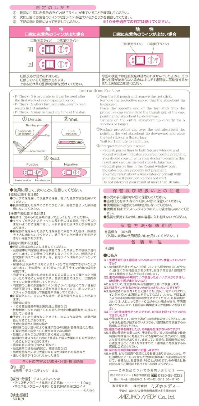 【第2類医薬品】 P-チェックS 1回 - ミズホメディー ※ネコポス対応商品 [妊娠検査薬/かんたん]