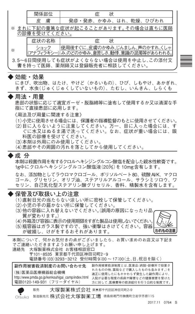 1g中 成分:分量 クロルヘキシジングルコン酸塩液(20%):10mg