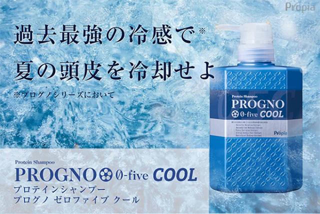 「プロピア プログノ 0-five ゼロファイブクールシャンプー 350ml」は、清涼成分のセイヨウハッカ油、メントールに加えて新たに清涼持続成分のメントキシプロパンジオールを新規配合したスカルプシャンプーです。ノンシリコンなのに指通りが良く、髪にハリ・コシ・ボリュームを出し、気になるニオイをケアします。強い冷感が長時間持続し、夏の頭皮をクールダウンできるスカルプシャンプーです。シリコン・パラベン・鉱物油・合成着色剤・香料・石油系界面活性剤フリー。