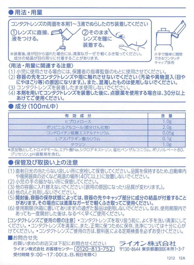 コンタクトレンズの両面を本剤1〜3滴でぬらしたのち装着してください