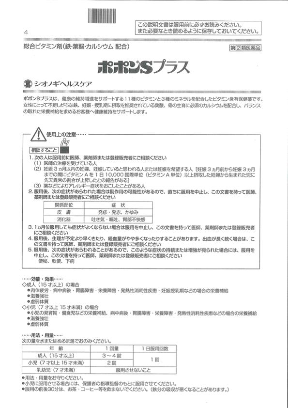 「ポポンSプラス」は、健康の維持増進をサポートする11種のビタミンと3種のミネラルを配合した総合ビタミン剤です。赤血球を作るのに必要な鉄、赤血球の形成を助け妊娠・授乳期に摂取を推奨されている葉酸、骨の生育に必須のカルシウムを配合し、バランスの取れた栄養補給を求めるお客様の健康維持をサポートします。