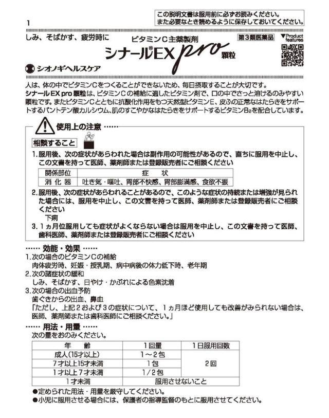 【第3類医薬品】 シナールEX pro 顆粒 52包 - シオノギヘルスケア [しみ/そばかす]