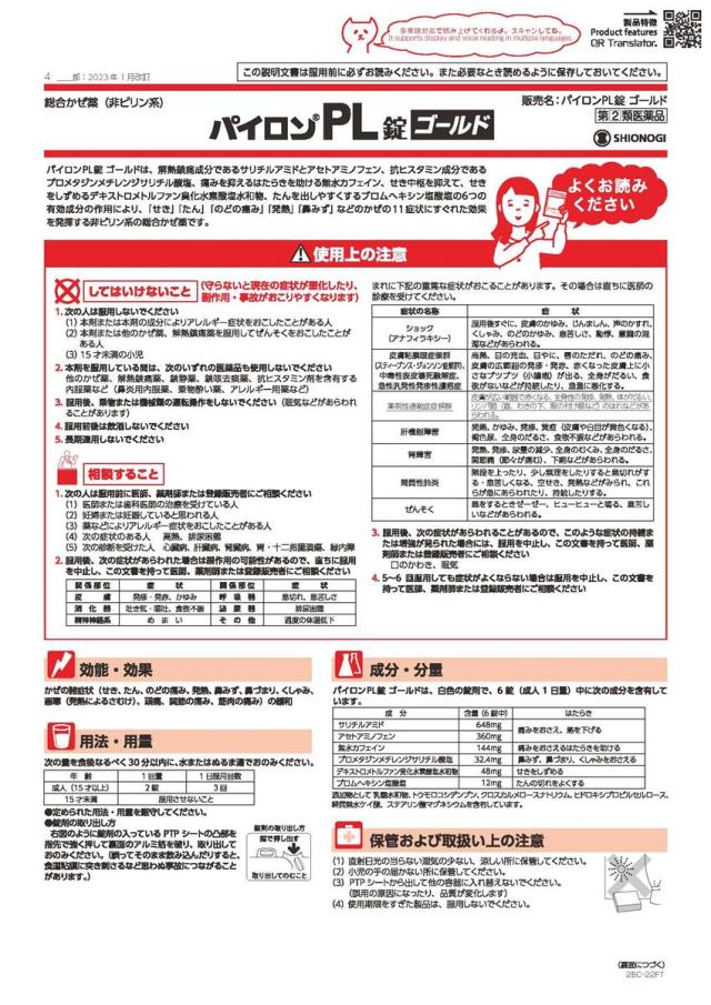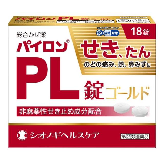 【指定第2類医薬品】 パイロンPL錠 ゴールド 18錠 - シオノギヘルスケア [セルフメディケーション税制対象] [風邪薬/かぜ]