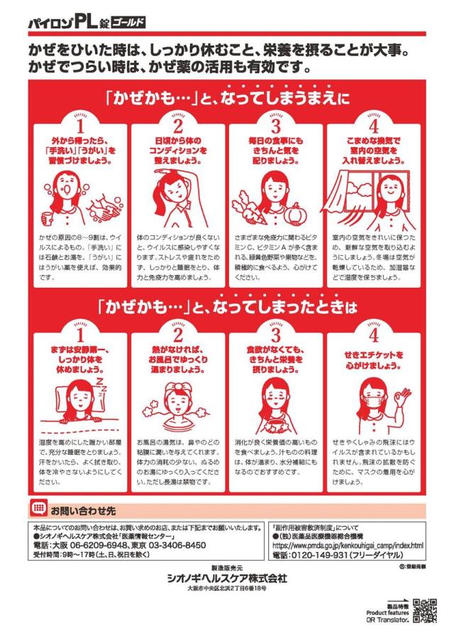会社名:シオノギヘルスケア株式会社 問い合わせ先:医薬情報センター 電話:大阪06-6209-6948、東京03-3406-8450 受付時間:9時〜17時(土、日、祝日を除く)
