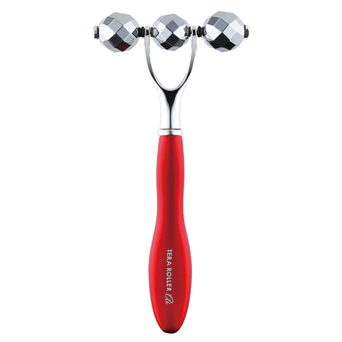 「テラローラー アイ2 クリスタルレッド」は、ローラー部分にテラタイトを使用した美波動ポイントケアローラーです。48面にダイヤカットされた3個のテラタイトローラーで、お肌に微細で適度な刺激を与えることが出来ます。さらに、人体工学に基づいた大きさの異なるローラーがお肌のカーブに合わせて流線を描き、顔や身体に効果的に働きかけます。