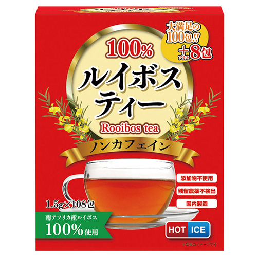 「タモン 100%ルイボスティー 1.5g×108包」は、南アフリカ産のルイボスを100%使用したお茶です。ノンカフェイン。添加物不使用、残留農薬不検出、国内製造。