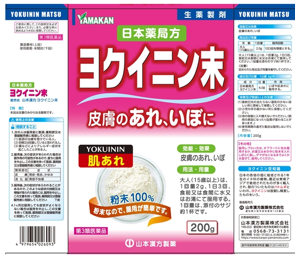 会社名:山本漢方製薬株式会社 住所:〒485-0035 愛知県小牧市多気東町156番地 問い合わせ先:お客様相談窓口 電話:0568-73-3131 受付時間:9:00〜17:00(土、日、祝日を除く) その他:www.kanpo-yamamoto.com