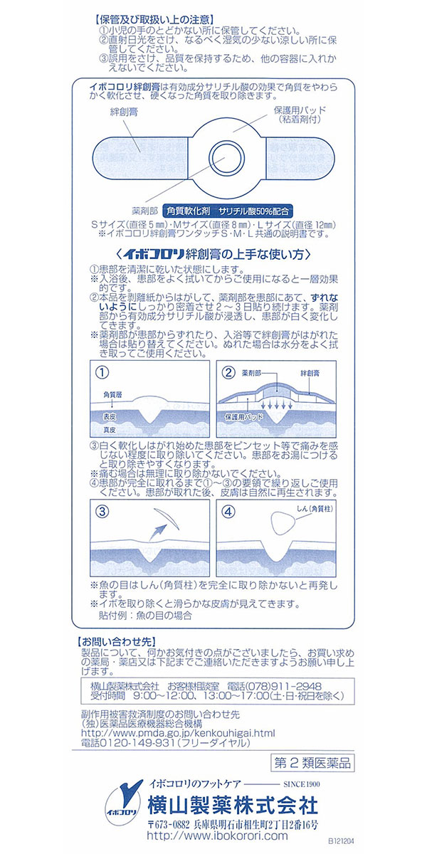 会社名:横山製薬株式会社 問い合わせ先:お客様相談室 電話:(078)911-2948 受付時間:9:00〜12:00、13:00〜17:00(土・日・祝日を除く) その他:www.ibokorori.com