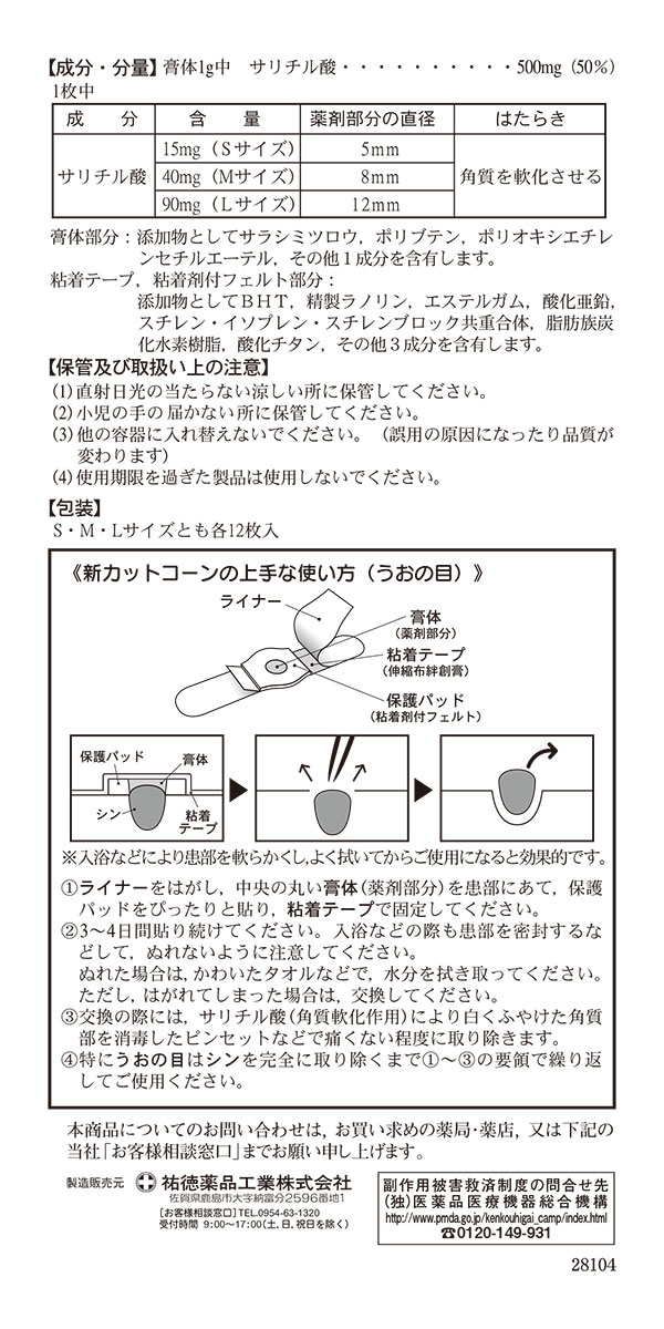 【第2類医薬品】 新カットコーン Sサイズ 12枚 - 祐徳薬品工業 [うおの目/たこ]
