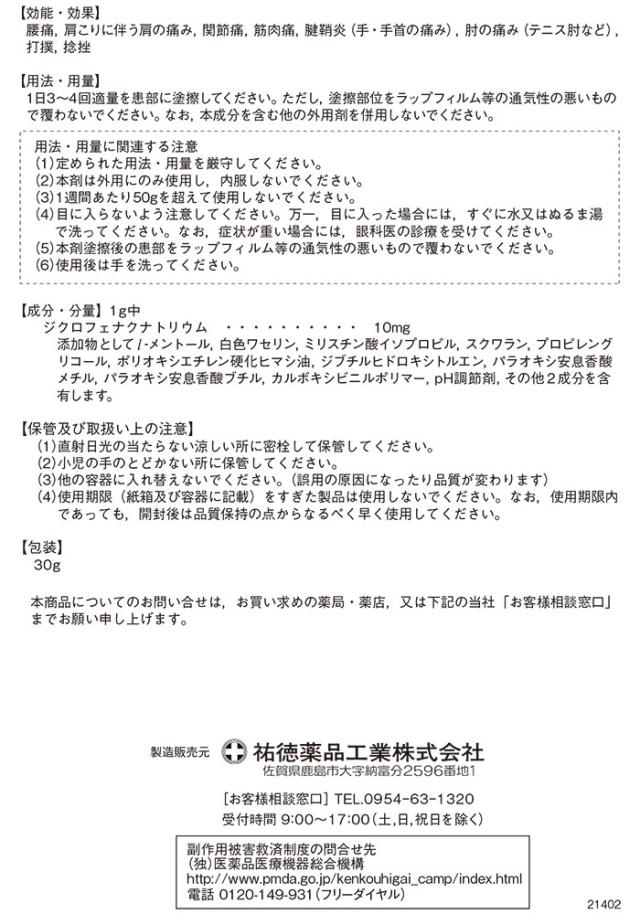 1g中 成分:分量 ジクロフェナクナトリウム:10mg