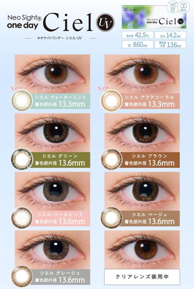 シエルベージュ、シエルブラウン、シエルグレージュ、シエルグリーン、シエルペールピンク、シエルアクアコーラル、シエルウォーターミント