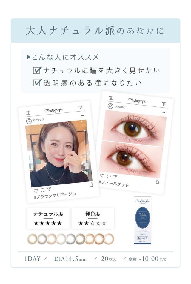 「エバーカラーワンデー ナチュラル モイストレーベルUV カラーコンタクト 14.5mm 20枚」は、直径14.5mm、自然なカラーデザインを追求。エバーカラー初のUVカット。