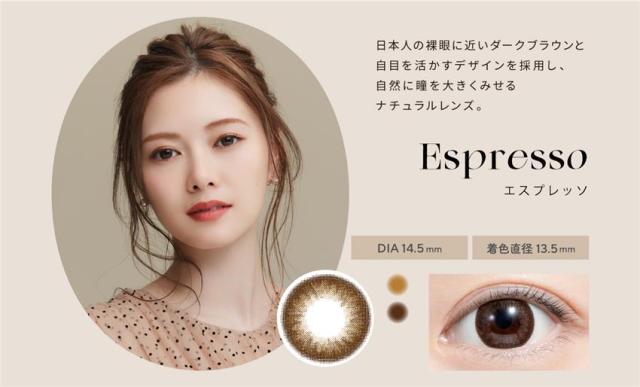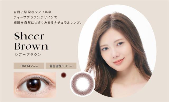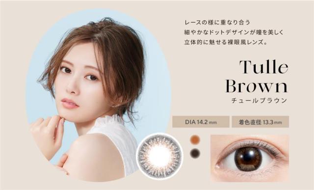 ■レンズ直径(DIA) 14.2mm(アフォガード、コーヒーゼリー、チュールブラウン、エアリーベージュ、シアーブラック、シアーブラウン、オリーブブラウン、カプチーノ) 14.5mm(カフェモカ、チェスナット、エスプレッソ、シャイニーブラウン) ■着色直径 13.2mm〜13.6mm ※カラーにより異なる ■ベースカーブ(BC) 8.6mm