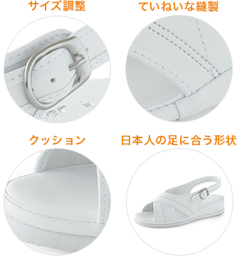 「ダイマツ ピュアウォーカー ベーシック PW7602 ホワイト SSサイズ」は、ベーシックな性能を突き詰めたナースのお仕事用サンダルです。ソールのかかと部分に滑りにくいラバーを使用している為、急ぐときも安心です。