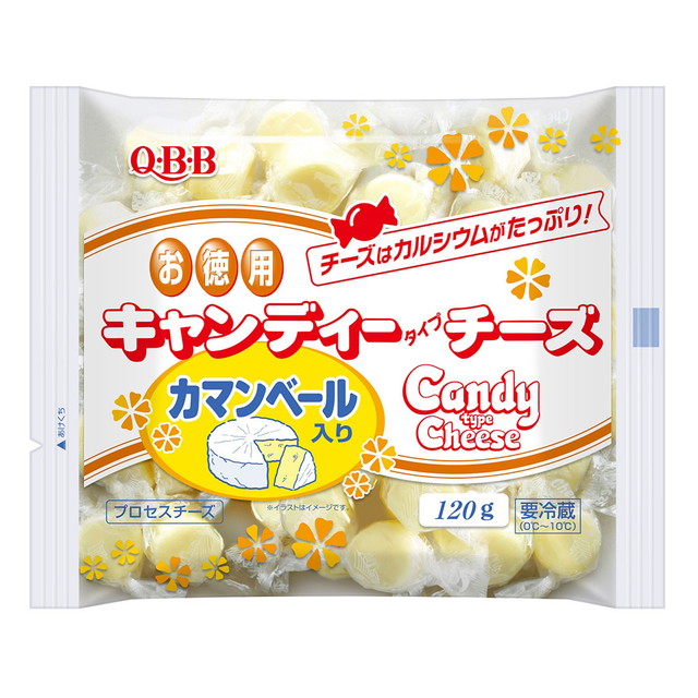 カマンベール風味が楽しめるキャンディーチーズです。ファミリーサイズの120g入りです。