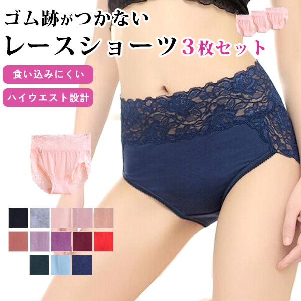 ショーツ 3点セット ハイウエスト レディース インナー パンツ 下着 レース 食い込まない 30代 40代 50代 送料無料