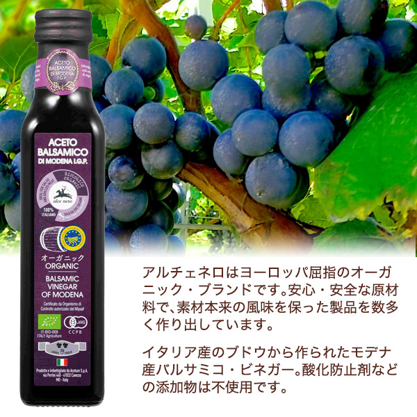 有機バルサミコ・ビネガー 250ml 単品 アルチェネロ(Alce Nero) バルサミコ酢 添加物不使用 オーガニック 調味料 マリネ ドレッシング サラダ 温野菜 食材 材料 食酢 肉料理 お試し 誕生日 記念日 クリスマス 料理