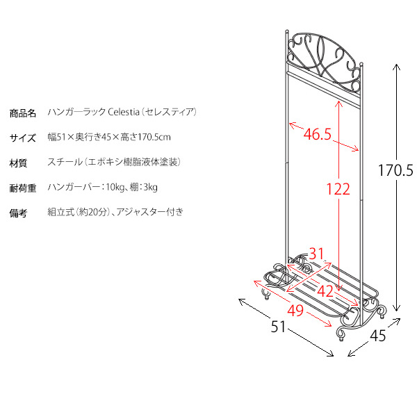ハンガーラック Celestia(セレスティア) ハンガーラック パイプハンガー 洋服掛け 衣類収納(代引不可)【送料無料】