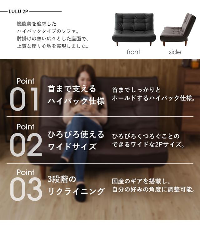 ハイバックソファ 2人掛け 肘無し 日本製 ポケットコイル ファブリック 合皮 2P ローソファー リクライニング 一人暮らし 1人掛け 1人 2人 コンパクト ソファー ローソファ ハイバックソファ(