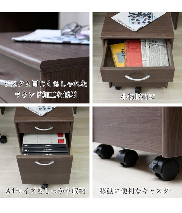 高級感のある色調と丸みのある天板が特徴的なデスクワゴン。上段にはノートや筆記用具など、デスク周りで散らかりがちな小物を収納できます。下段はA4ファイルも入る大きさなので、1台デスクの横に置くだけでたっぷり収納できます。