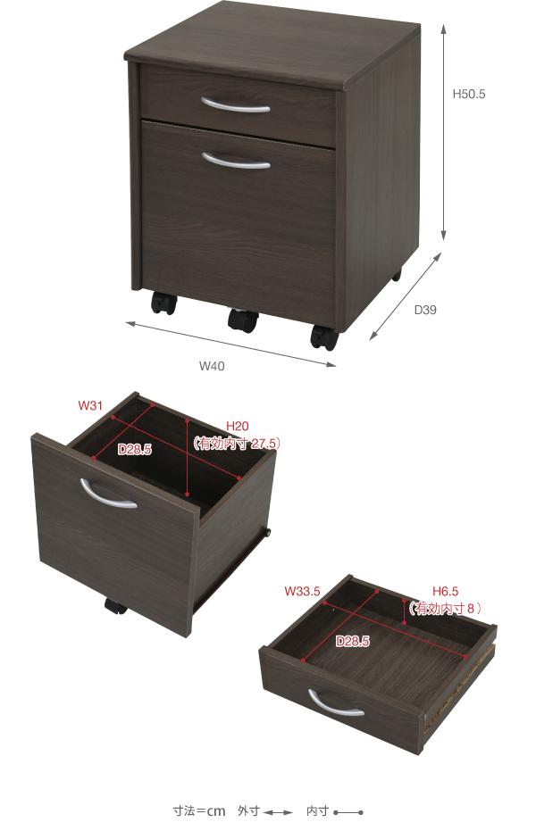 デスク ワゴン 2段 幅40 高さ50 奥行40 収納 引き出し キャスター サイドキャビネット サイドワゴン 木製 A4 収納 ファイル(代引不可)【送料無料】