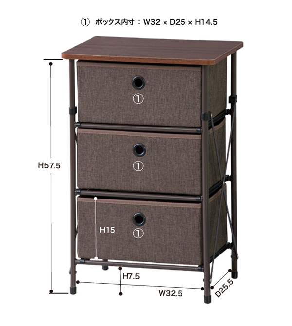 簡単組立チェスト3段 収納 スチールフレーム ファブリック ファブリックチェスト 北欧 おしゃれ(代引不可)【送料無料】