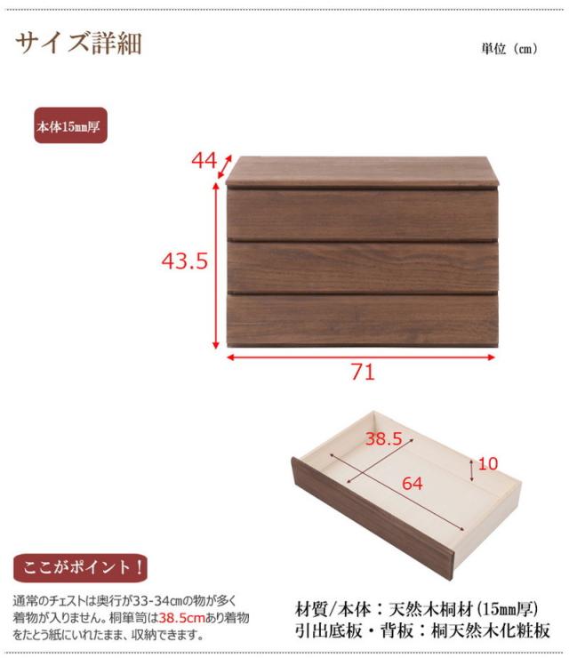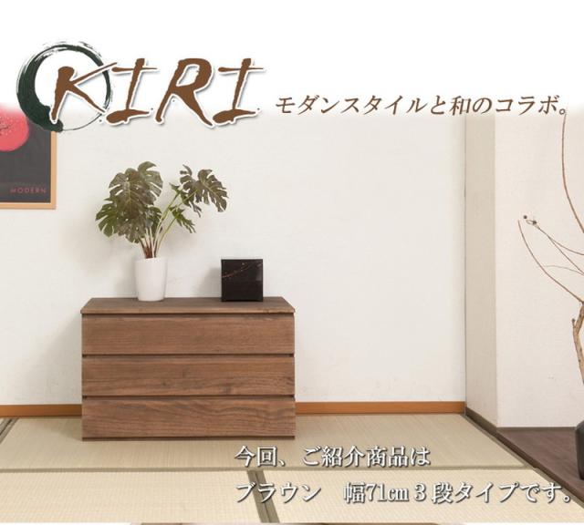 チェスト 日本製 桐 完成品 ブラウン 洋風 収納 たんす 幅71cm 3段 三段 国産 モダン おしゃれ 天然木 押入れ(代引不可)【送料無料】