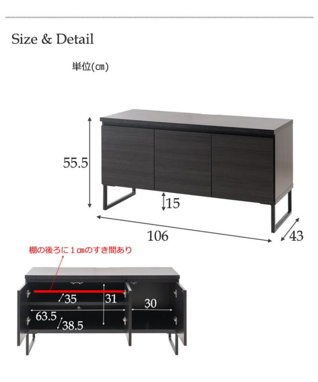 ■商品サイズ/本体:(約)幅106×奥行43×高さ55.5(脚15含む)cm